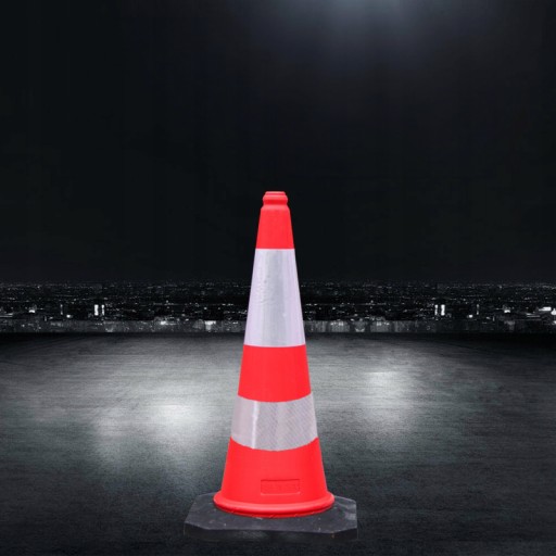Pachołek wyposażony jest w odblaskowe pasy, które gwarantują doskonałą widoczność zarówno w dzień, jak i w nocy.