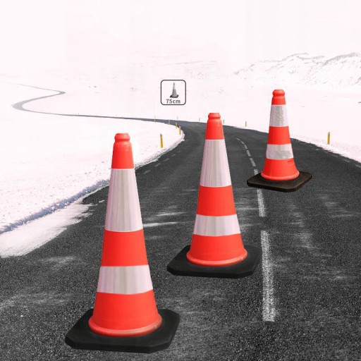 - Bezpieczeństwo: Dzięki odblaskowym pasom pachołek jest doskonale widoczny, zwiększając bezpieczeństwo na drodze.