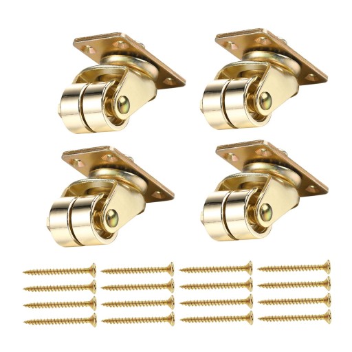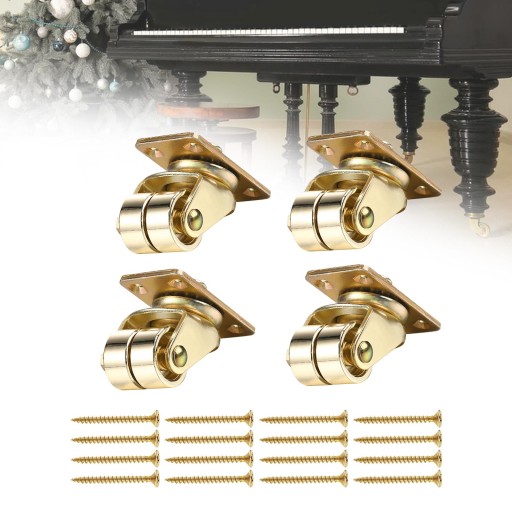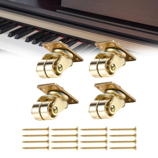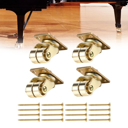 Колеса фортепиано металлические со сменными винтами, 4 шт., поворотные, золотистого цвета.