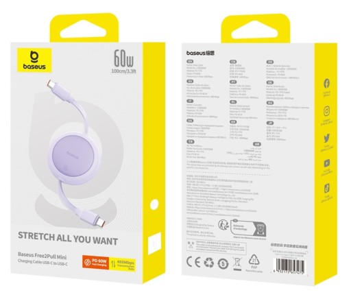 - Model: Free2Pull Mini Charging Cable USB-C to USB-C 60W 1m Nebula Purple