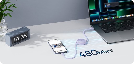 Szybkie i efektywne ładowanie: Wykorzystując zaawansowane technologie ładowania, kabel może naładować Twoje urządzenia szybko i bezpiecznie. Doświadcz szybkiego ładowania MacBooka Pro 2021 do 41% w 30 minut lub Phone’a 15 Pro do 57% w tym samym czasie.