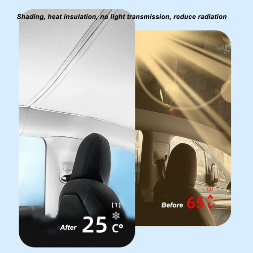 1. Montaż: zamiennik dla modelu Tesla Y 2021-2023. Osłonę przeciwsłoneczną mocuje się do wewnętrznej strony szklanego dachu za pomocą dołączonych klipsów. Gdy nie jest używany, można go łatwo złożyć i dla wygody przechowywać w torbie.
