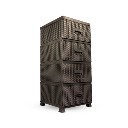 KOMODA SZAFKA REGAŁ PLASTIKOWY Z 4 SZUFLADAMI DO ŁAZIENKI BRĄZOWA RATTAN M1