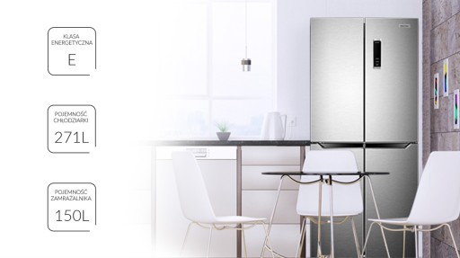 Lodówka MPM-434-SBF-04 to urządzenie typu Multi Door o pojemności 271 litrów w części chłodniczej i 150 litrów w części zamrażalniczej. Urządzenie pracuje w klasie energetycznej E. Posiada wydajny i niezawodny kompresor inwerterowy, który zapewnia też cichą pracę.