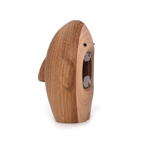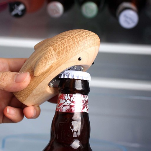 Drewniany otwieracz do butelek piwa w kształcie rekina ozdoba domu prezent kuchenny na biały