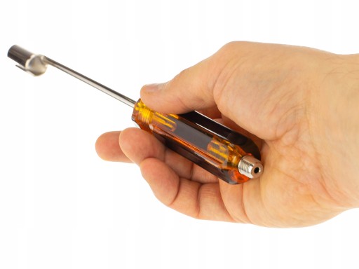 Narzędzie ułatwiające przykręcanie i odkręcanie złączy F. Długie ramię pozwala na pracę w miejscach o ograniczonym dostępie.