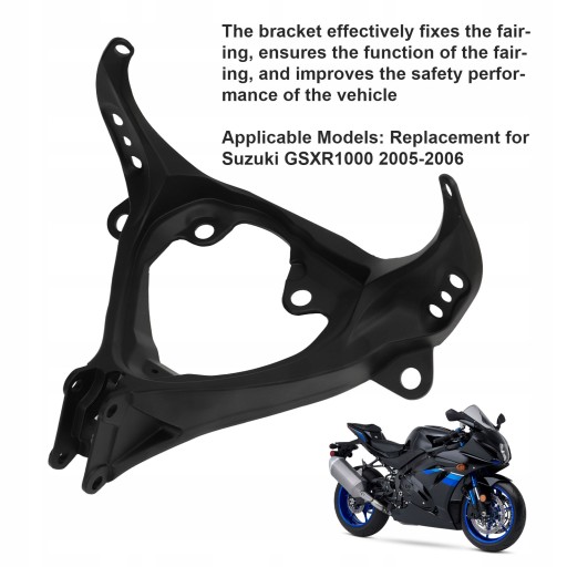 Funkcja:1. Dotyczy modeli: Górny wspornik owiewki reflektora zastępuje Suzuki GSXR1000 2005-2006, idealnie pasuje do Twojego motocykla.
