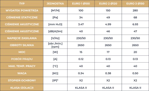 - Wentylator Euro wykonany jest z wysokiej jakości tworzywa ABS