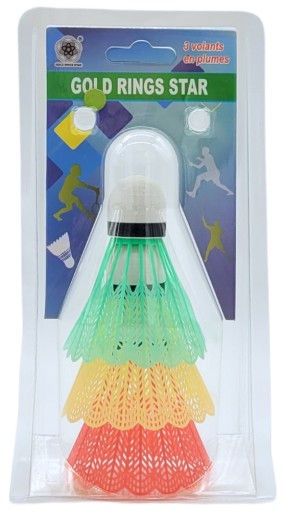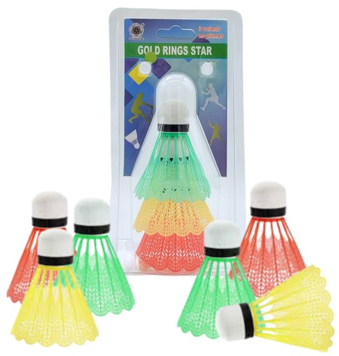 Zestaw 3 kolorowych lotek do gry w badmintona. Lotki są wykonane z wysokiej jakości tworzywa sztucznego, które są trwałe i długotrwałe. Kolorowe piórka dodają zabawy do gry i są łatwo widoczne podczas gry.