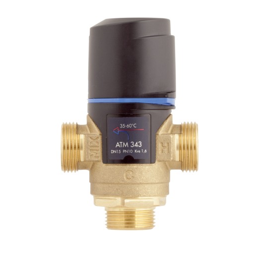 ATM 343 - termostatyczny zawór mieszający przeznaczony do regulacji temperatury w domowych instalacjach ciepłej wody użytkowej oraz centralnego ogrzewania. Posiada funkcję "bez oparzeń".