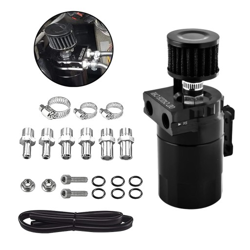 W zestawie: filtr, 3x króciec (10mm 12mm 14mm), przewód 10mm, opaski oraz o-ringi i śruby do mocowania