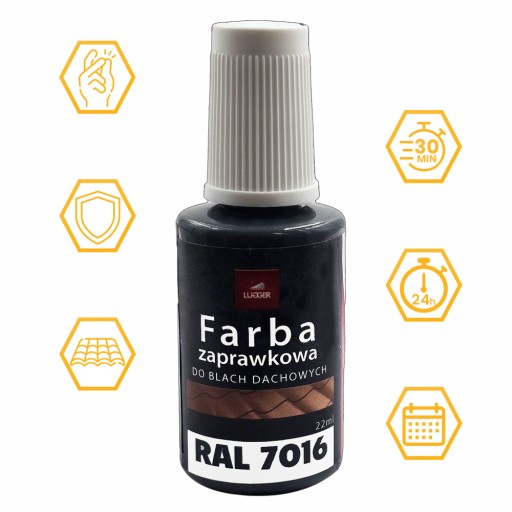 FARBA ZAPRAWKOWA ANTRACYT DO BLACH DACHOWYCH STALOWYCH 22ml RAL 7016 LUGGER