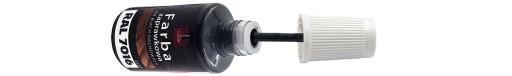 Buteleczka zaopatrzona jest w pędzelek przymocowany do nakrętki, który zapewnia równomierne rozmieszczanie farby na uszkodzone powierzchnie.