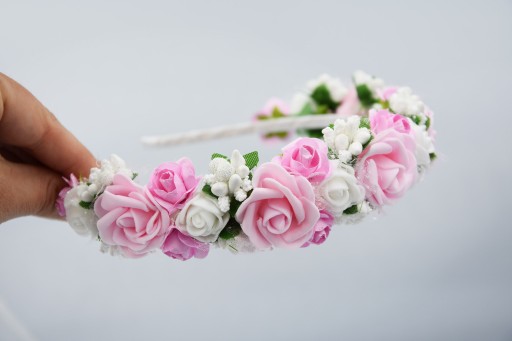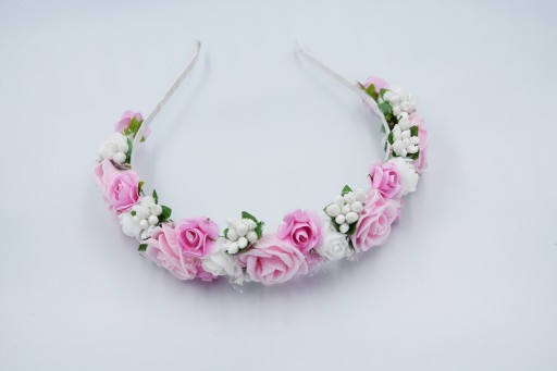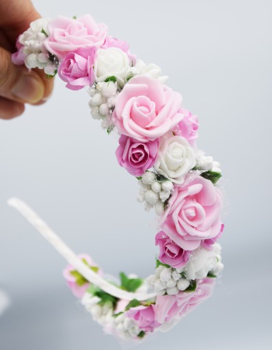 OPASKA różówa wianek komunijny kwiaty różowe na głowę na komunije wesele