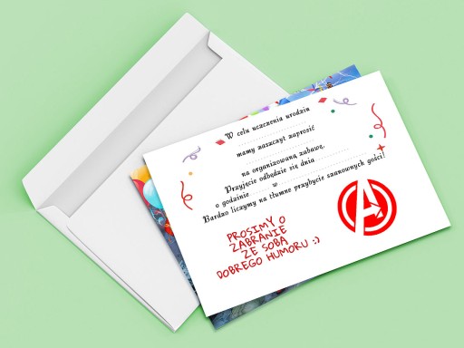 ZAPROSZENIE AVENGERS IRONMAN HULK THOR NA URODZINY DZIECKA + KOPERTA GRATIS