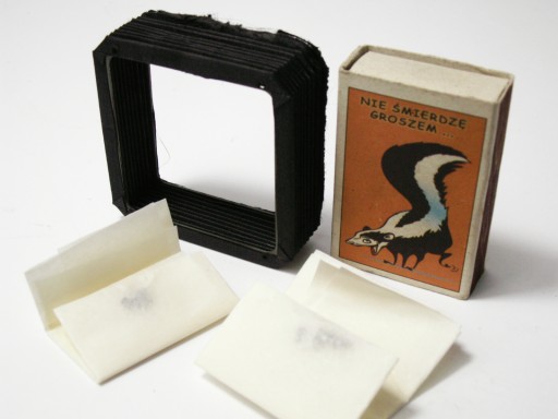 Miech do Mamiya C33 - będzie też pasował do C3, C330 i C330F plus śruby mocujące. To ten mieszek decyduje o faktycznej szczelności komory filmu! Miech w bardzo dobrym stanie, sztywny i szczelny - niestety ostatni rant który wraz z ramką jest normalnie przyklejony do korpusu jest trochę postrzępiony - wymaga naprawy, podklejenia i każdy posiadający jakieś zdolności manualne zrobi to bez problemu - jednak sprzedaję go raczej z przeznaczeniem do projektów DIY.