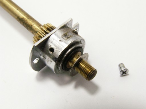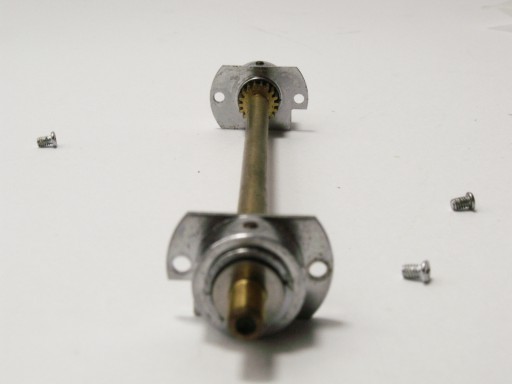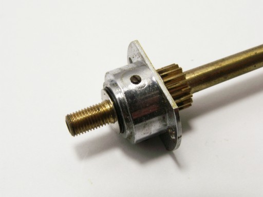 Ośka mechanizmu wysuwu miecha/czołówki. Bardzo dobry stan - zębatki w dobrym stanie gwarantują poprawne działanie wysuwu, brak jakichkolwiek skrzywień. Gwintowanie zewnętrzne i wewnętrzne w b.dobrym stanie. Kompletny mechanizm z mocowaniami i śrubami mocującymi.