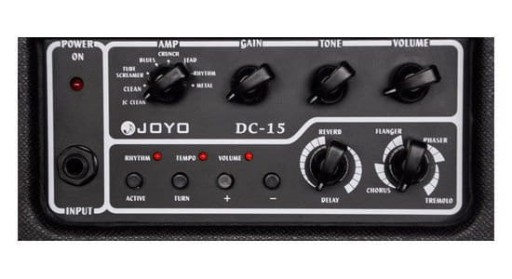 Joyo DC-15 - rewelacyjne combo gitarowe firmy Joyo, z wbudowanymi cyfrowymi efektami i rytmami. Przeznaczone zarówno dla początkujących gitarzystów jak i zaawansowanych, do ćwiczenia w domu i do gry na scenie. Jego zalety to bardzo małe wymiary, niska waga i niewiarygodnie znakomite brzmienie.