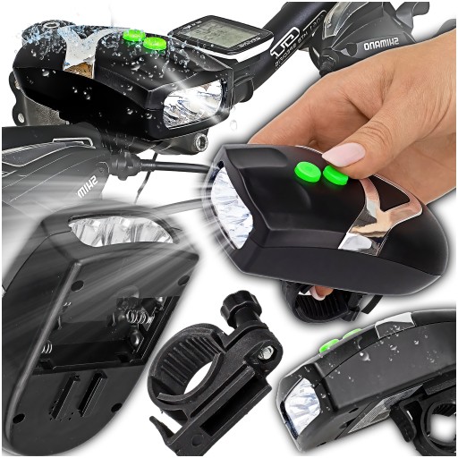LAMPKA ROWEROWA PRZEDNIA NA ROWER KIEROWNICĘ WIELOFUNKCYJNA Z DZWONKIEM