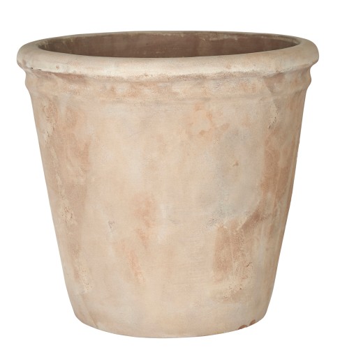Duża doniczka, wykonanych z mrozoodpornej terakoty w odcieniach naturalnej terakoty i beżu.