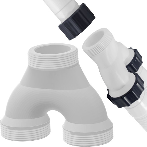 ZŁĄCZKA WĘŻA RURY BASENOWEJ ROZDZIELACZ TRÓJNIK BASENU 38MM Z GWINTAMI 60MM
