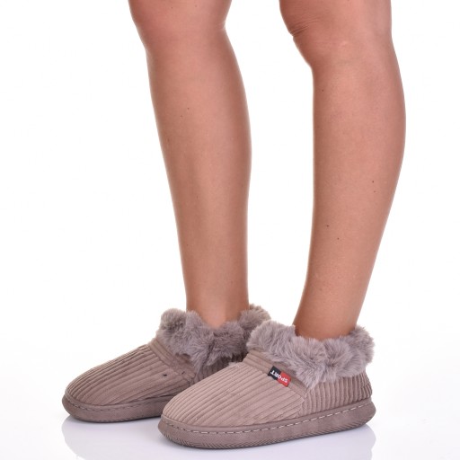 Futerko: Kapcie wyposażone w miękkie futerko, które otuli Twoje stopy ciepłem i przytulnością.