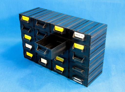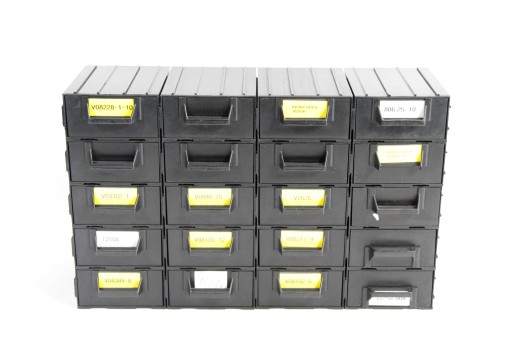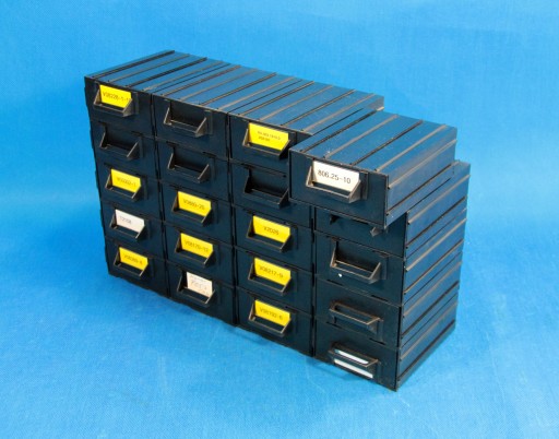 Oferuję Państwu moduł 20 sztuk przemysłowych szufladek wysuwanych przeznaczonych do elektroniki.