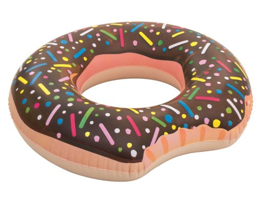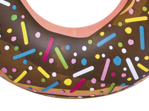 Nadmuchiwane duże koło do wody w kształcie kolorowego pączka, świetnie sprawdzi się podczas wyjazdu na urlop lub na basen.