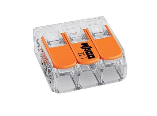 Złączka zaciskowa WAGO pozwala na połączenie pełnych przewodów, żył oraz przewodów drobnozwojowych w sposób szybszy i bardziej niezawodny. Dzięki zastosowaniu złączki możemy zminimalizować ilość miejsca w puszkach połączeniowych. Przezroczysta obudowa pozwala na inspekcję wzrokową prawidłowości połączeni