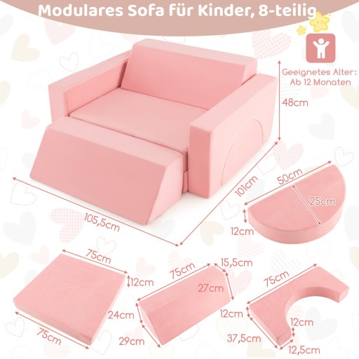 Modułowa sofa dziecięca Sofa modułowa ze zdejmowanym pokrowcem 105,5 x 101 x 48 cm różowa