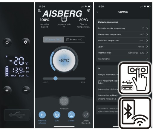 Przedmiotem aukcji jest nowa SPRĘŻARKOWA lodówka turystyczna 12/24V. Urządzenie zostało wyposażone w zaawansowaną elektronikę, która pozwala na pełną kontrolę temperatury w środku. Bardzo duży zakres regulacji temperatury od -20C do +20C. Wszystkie nasze lodówki zostały wyposażone w przycisk do pracy ECO lub też MAX. Lodówka wyposażona jest w markowy agregat czołowego producenta urządzeń chłodniczych. Lodówka także posiada złącze USB, które można wykorzystać do ładowania np. telefonu. Łączność z lodówką zapewnia moduł bluetooth i dedykowana aplikacja na telefony . Obudowa odporna na uderzenia nie tak jak w przypadku obudowy aluminiowej że każde uderzenie przypadkowe jest widoczne. Lodówka posiada trzy tryby ochrony przed rozładowaniem akumulatora.