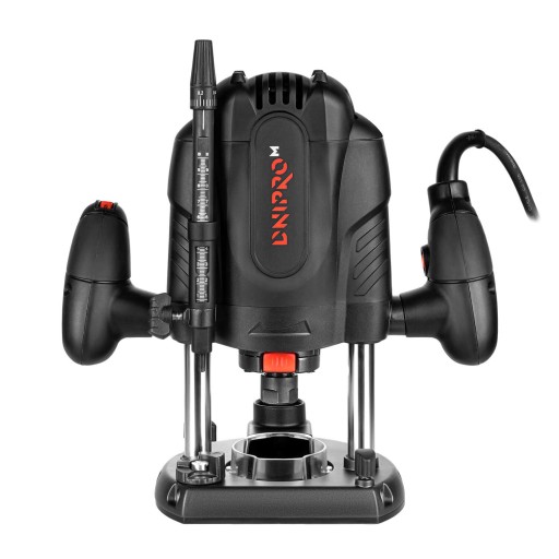 Narzędzie ma odwracalny system blokowania głębokości frezowania. Aby opuścić frez, należy nacisnąć przycisk i zwolnić go po osiągnięciu żądanej głębokości, sprężyna zablokuje się w odpowiednim położeniu.