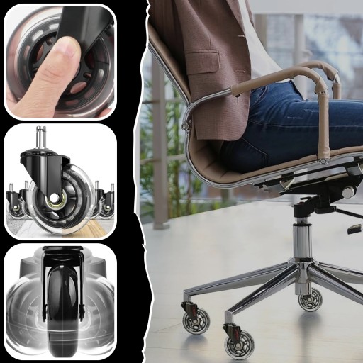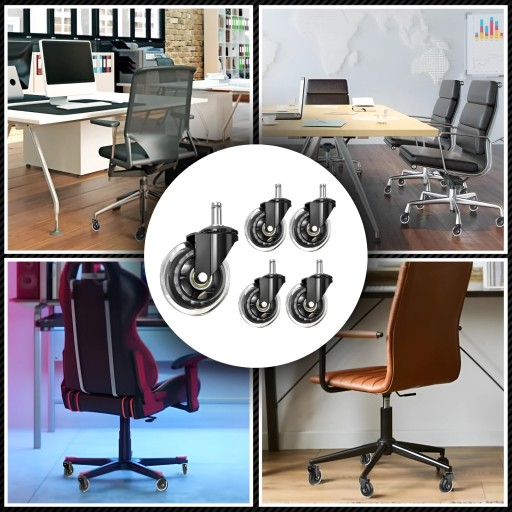 Nasze gumowe kółka zapewniają ciche i płynne poruszanie się, chroniąc podłogi przed zarysowaniami. Są łatwe w instalacji, pasują do większości foteli i oferują doskonałą stabilność oraz trwałość.