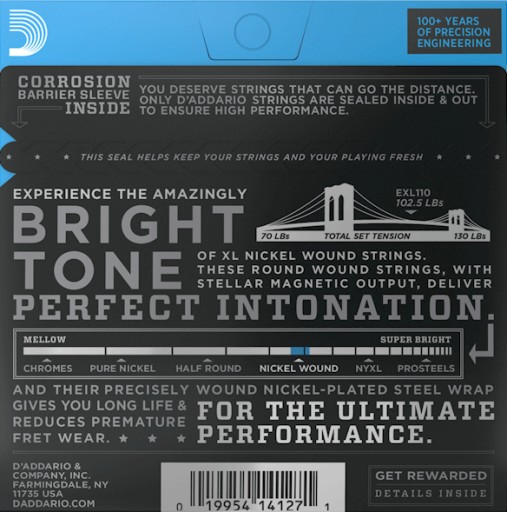 Rozmiar: 10-46 (10,13.5,17,25,34,46) Balanced Tension - nowa grupa wśród strun XL do gitary elektrycznej. Struny dobrane tak grubościami by naciąg i naprężenie były zrównoważone - powoduje to lepsze strojenie i pracę mostków typu tremolo, floyd i łatwiejsze podciaganie strun przy mostkach sztywnych. Struny wybierane przez rockowych gitarzystów z całego świata, znane z wyrazistego, jasnego brzmienia i znakomitej intonacji.