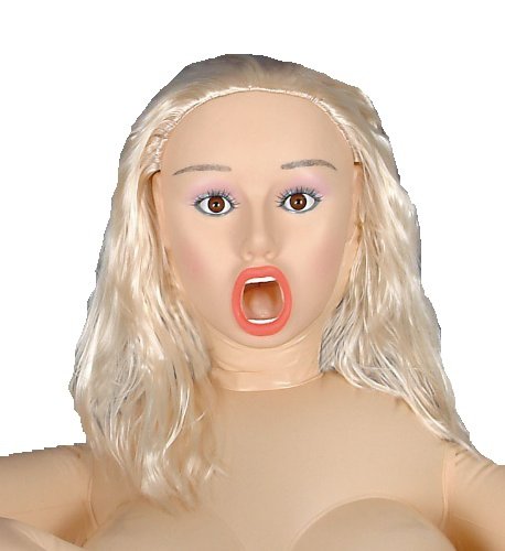 A blonde to fall in love with! Sex doll in a sitting position with hugging arms. She has a beautiful 3D head, blonde hair and large breasts with hard nipples. 3 pleasure holes that can vibrate when the included multi-speed vibe-bullet is used. Please order batteries separately (3 x AA). Complete length 74 cm (sitting down). PVC, polypropylene, ABS.