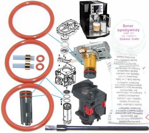 Uwaga!!! Sprzedajemy tylko komplety, ponieważ wymiana jednej uszczelki mija się z celem. Nie przesmarowania zaparzacza oraz uszczelek to duży błąd, który prowadzi do szybszego zużycia elementów. Szkoda naszej pracy, lepiej wymienić wszystko raz i przesmarować zaparzacz z uszczelkami zgodnie z naszą instrukcją i mieć zadanie z głowy na dłuższy czas.