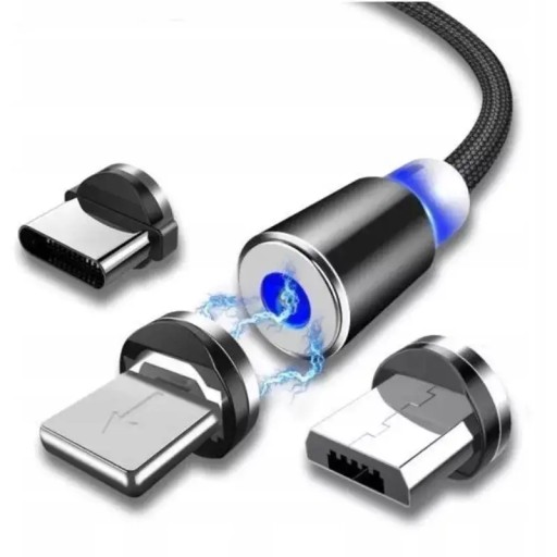 Kabel magnetyczny 3w1 micro-usb typ-c usb-c iphone lightning