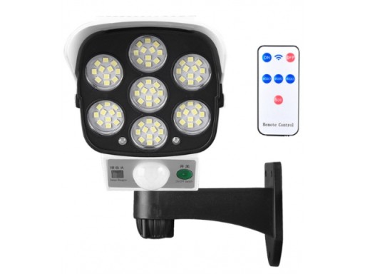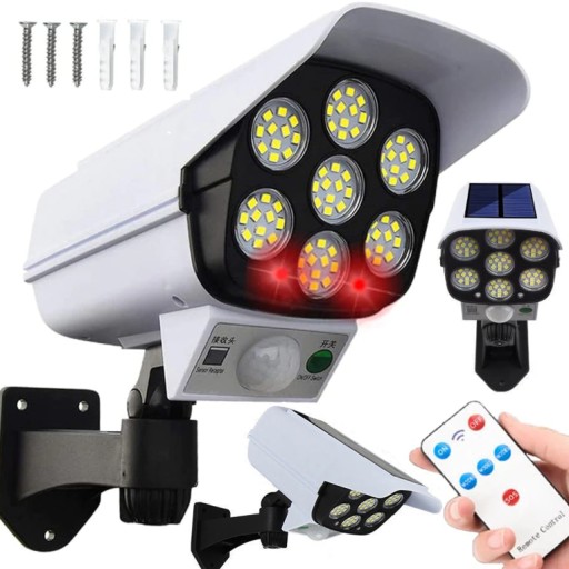 Wysokiej jakości atrapa kamery to urządzenie zasilane z panelu słonecznego co gwarantuje oświetlenie bez dodatkowego źródła zasilania. Wyposażona została w bardzo jasny panel 77 punktów LED COB o mocnym strumieniu światła.