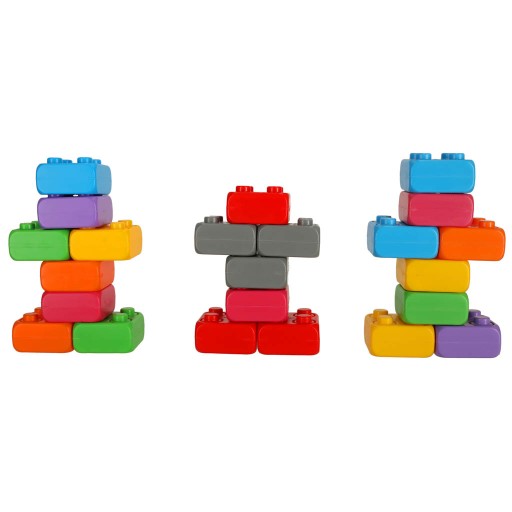 Cegła Junior 60. Zestaw klocków budowlanych składający się z 60 elementów. Klocki konstrukcyjne Wafle są idealne, dla dzieci, które dopiero zaczynają przygodę z klockami, uczą się układać oraz dopasowywać ze sobą różne elementy. Zabawa klockami budzi kreatywność, rozwija zdolności manualne, daje nieskończone możliwości i można poświęcić wiele godzin na twórczej zabawie. Dziecko nie układa według żadnego szablonu, a sam może konstruować cokolwiek sobie wymyśli.
