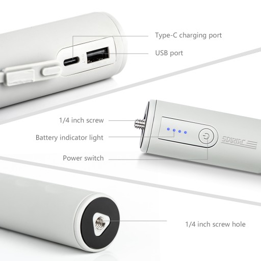 [Bank mocy o dużej pojemności] Wbudowana bateria 6000 mAh, z portem USB i portem ładowania typu c, mająca na celu zapewnienie źródła zasilania dla smartfonów, aparatów, stabilizatorów i innych, może znacznie wydłużyć czas fotografowania.