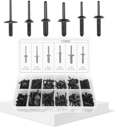 115 НАБОР УНИВЕРСАЛЬНЫХ ЗАКЛЕПОК ПЛАСТИКОВЫЕ ЗАКЛЕПКИ ДЛЯ АВТОМОБИЛЕЙ