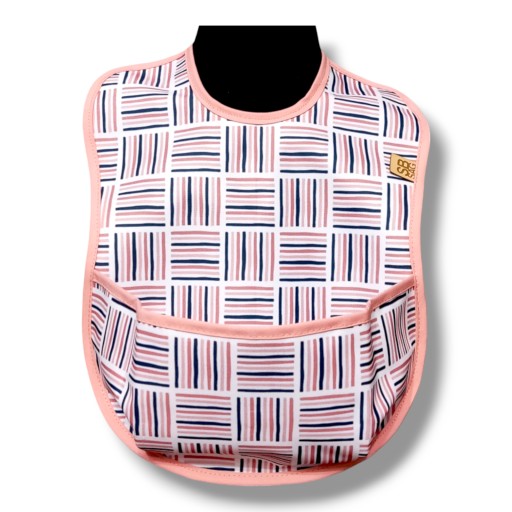 Wodoodporne śliniaki SafeBabySAG powstają z najwyższej jakości tkaniny, której najważniejszym atutem jest nieprzemakanie - jak w śliniaku silikonowym. Tkanina odznacza się miękkością - jak w śliniaku z materiału. Długo pracowaliśmy nad kieszenią. Testy, rozmowy z użytkownikami, osobiste doświadczenia i praca z tkaniną pozwoliły na stworzenie produktów z odchylaną kieszenią 3D, która nie zamyka się i pracuje z ruchem użytkownika. Głębokości kieszeni, zapobiega wypadaniu tego co wpadło w czasie pochylania się. Nasze produkty wyróżnia niska waga, miękkość, łatwość czyszczenia i szybka gotowość do ponownego użytkowania. Bawełniane lamówki wokół śliniaka i troczki do mocowania nie podrażniają skóry. Wiązanie jest najskuteczniejszym - szybki i niweluje ryzyko samodzielnego zdejmowania śliniaka przez podopiecznego oraz bardzo trwały w przeciwieństwie do rzepów, które szybko się wyrabiają i mogą podrażniać czy zaczepów, które są łatwe do "rozpracowania" przez dziecko. Dodatkowo wiązanie pozwala idealnie dopasować śliniak na szyi, aby zapobiec dostawaniu się zabrudzeń pod śliniak.