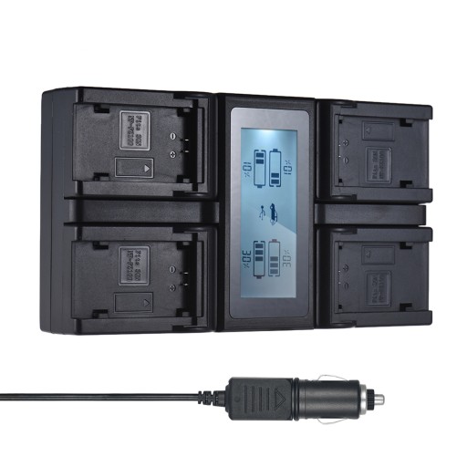 Ta ładowarka baterii Andoer ma 4 kanały baterii. Możesz ładować 4szt baterii w tym samym czasie. Wyświetlacz LCD pokazuje stan naładowania akumulatora. Może skutecznie chronić baterię przed przeładowaniem, co w dużej mierze przedłuża żywotność baterii. Wyposażony w ładowarkę samochodową prądu stałego dla wygodniejszego użytkowania.