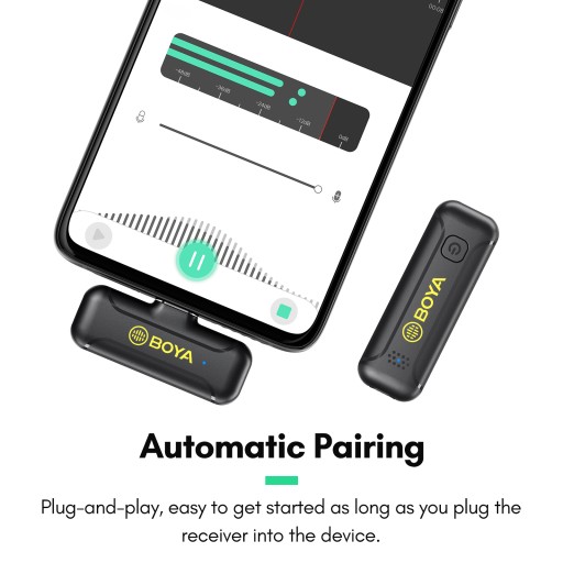 【Mały i lekki mikrofon bezprzewodowy】 Łączna waga TX i RX to nie więcej niż 15g, są lekkie i przenośne; automatyczne parowanie, łatwe do rozpoczęcia, o ile podłączysz odbiornik do urządzenia. Ze względu na wyjątkowo niewielkie rozmiary i super lekki nadajnik nie szarpie za kołnierz, gdy go zapinasz.