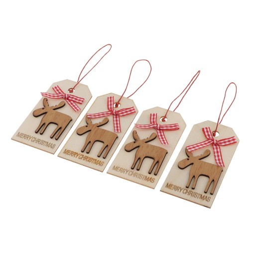 4 шт., деревянные рождественские украшения, подвески, висящие розовые олени