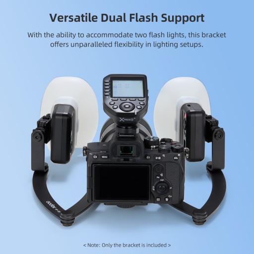 【Wszechstronna obsługa dwóch lamp błyskowych】 Dzięki możliwości umieszczenia dwóch lamp błyskowych uchwyt ten zapewnia niezrównaną elastyczność w konfiguracji oświetlenia. Obrót główki lampy o 180° i obrót kulek o 360° na końcach ramion umożliwiają fotografom eksplorację szerokiego zakresu kątów oświetlenia.