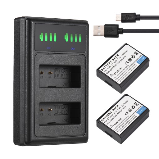 W zestawie 2 baterie litowo-jonowe 7.4V 2200mAh LP-E10 dla wygodnej wymiany.