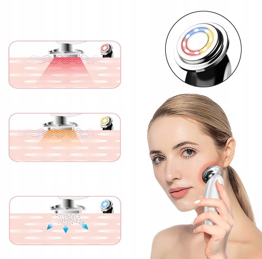 To urządzenie do pielęgnacji twarzy z mikroprądem EMS (jony galwaniczne), ciepłym masażem wibracyjnym, czerwonym, niebieskim i pomarańczowym światłem, które może zapewnić głębokie oczyszczanie, lepsze odmładzanie i lifting twarzy. Kolor: biały