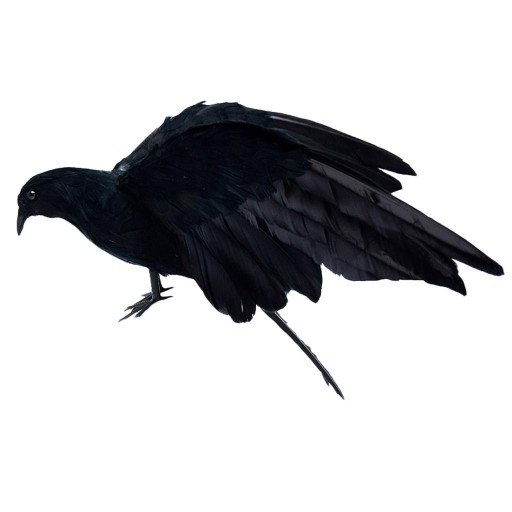 Ręcznie realistyczne dekoracyjne sztuczne ptaki Straszne wrony o realistycznym wyglądzie, z głową opuszczoną i rozłożoną.