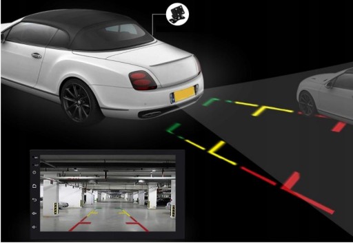 W zestawie kamera cofania z nocnymi diodami LED, tylna kamera uruchomi się automatycznie po wrzuceniu biegu wstecznego.